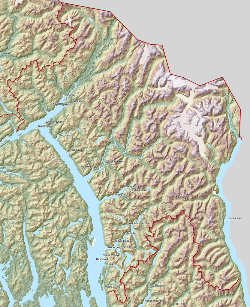 Joonák, dreaming (Unuk River) drains about 900 square miles of interior British Columbia. Its watershed, while much smaller than that of the 3 principle mountain-penetrating rivers of Southeast—the Stikine, Taku, and Alsek/Tatshenshini—does merit the name ‘transboundary,’ as it connects to BC through a low-elevation valley. Climate is colder here than in South Misty province— described next—and topography is more rugged. Elevations reach 6000 feet above Soule Glacier near Hyder.