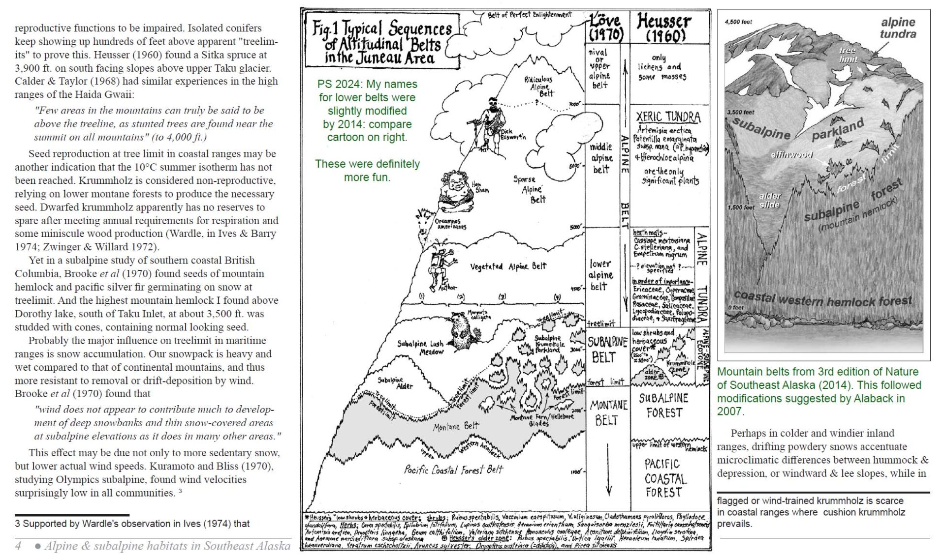 In the predigital dark ages, before University of Alaska Juneau became UAS, I took quite a few classes from the inimitable invert-zoo-&-botanist Rita O’Clair. Recently, helping to assemble an atlas for the 2010-2013 team that surveyed 10 highcountry sites from Chilkat country to the Haida Islands, I found myself rereading, somewhat apprehensively, this paper that I wrote for Rita’s Alpine class, 41 years ago. To my relief, the original was actually not bad. Enough that I’m not too embarrassed to scan and reformat it for distribution here on JuneauNature.