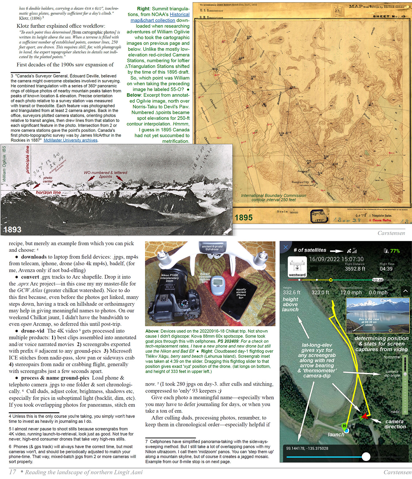 Teaching geol-393—Reading the landscape of northern Lingít Aaní—with my friend Cathy Connor in fall 2022, I wanted our students—earth-sci majors and fellow&sister greyhairs—to appreciate the evolution of mapping technology, across the two and a quarter centuries since first contact. I had many questions about a pair of ship commanders, Vancouver & Meade, nearly a century apart but scarcely different in terms of carto-sophistication. And then suddenly, driven largely by US-Canadian competition over borderlines, an explosion of aggressive mountaintop triangulations by rugged bushwackers like Ogilivie.