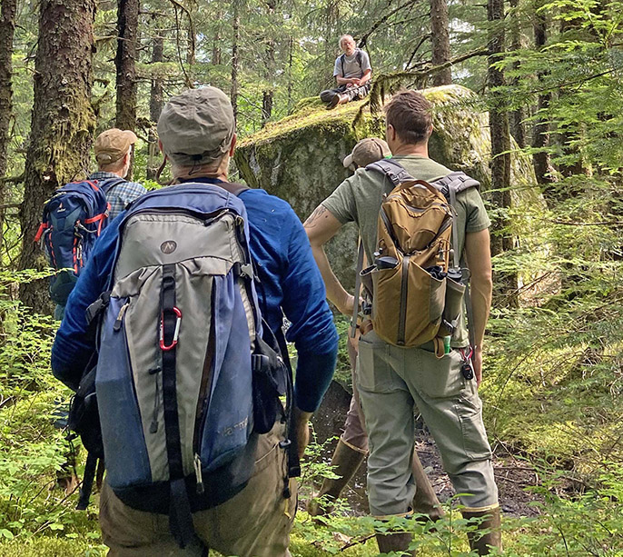 Bushwacking, map and compass, GPS First a caveat about technology, adapted from a sidebar in our course manual What would Raven see: The downside of gadgets Sitka anthropologist Richard Nelson remembers that when younger Inuit first began to use compasses, the elders worried. The compass, they claimed, was weakening peoples’ intimacy with their treeless northern landscape. No longer could hunters orient themselves by the concordance of subtle natural signs, such as the way snow deposits in prevailing winds. The compass was, in a sense, weakening peoples’ relationship with their environment. Today the compass–once ‘cutting edge’–is now increasingly left behind by outdoorspeople armed with more advanced navigational tools. As of 2015, even dedicated GPS units are being displaced, because our phones and watches ‘can do all that.’ But does ever-advancing technology place even more buffers between the navigator and the terrain? We might bear this cautionary note in mind as we explore the use of technology in this course. Few would suggest we abandon useful tools such as compasses or GPS units. But we should remember Raven’s perspective. Do our tools sharpen or dull our perceptions? Trails are cool. I’ve written a 72-page guidebook about them. But on page 65, I…