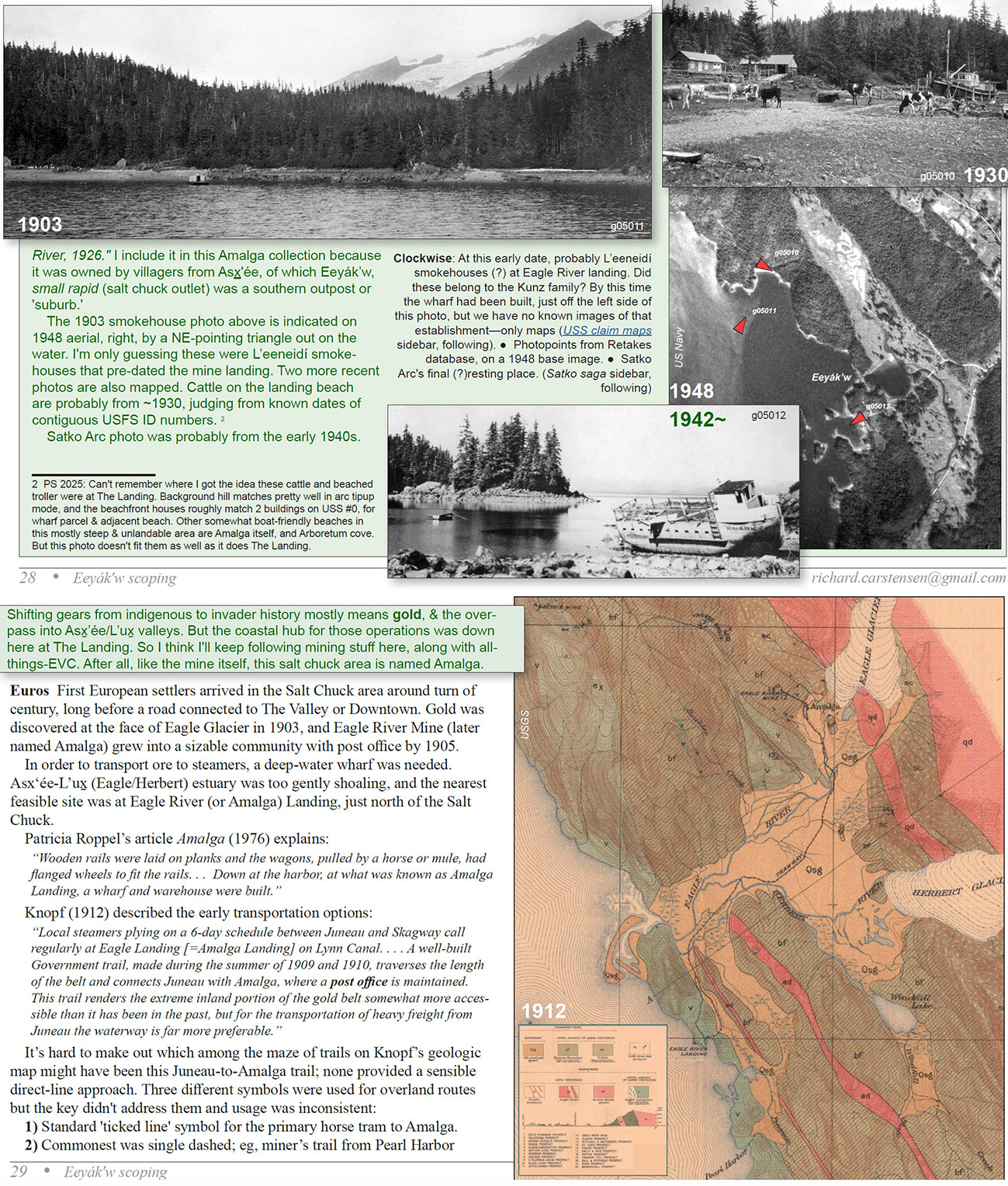 In 2007, moving into a 4-year interpretive signage project for 10 CBJ watersheds, I set up ‘scoping’ documents, receptacles for pretty much everything I could find on the geology, biology and human history of those areas. As years passed, these documents took on a standardized format. Part 1, Scoping, is a traditional bedrock-to-bugs summary, from multiple sources. Part 2 Journals, contains detailed notes, maps and photos from each site visit deemed worthy of inclusion. These are followed by Appendices.